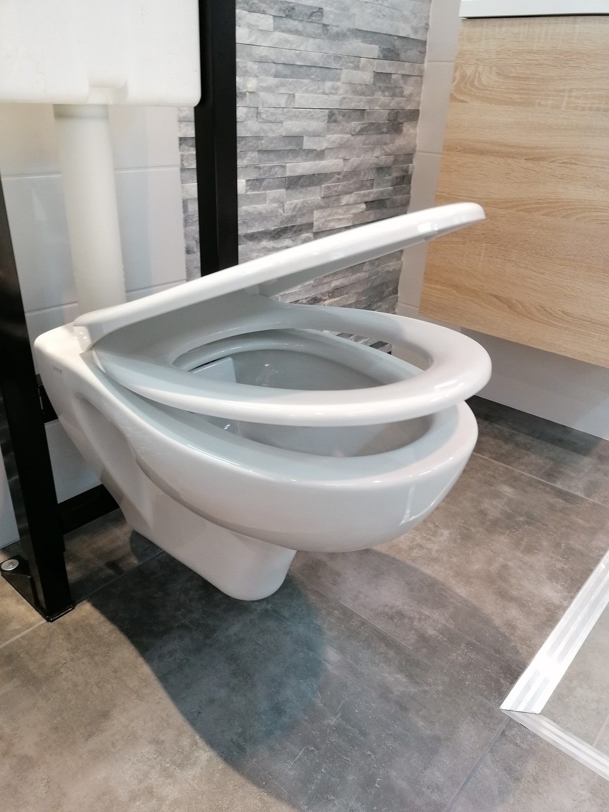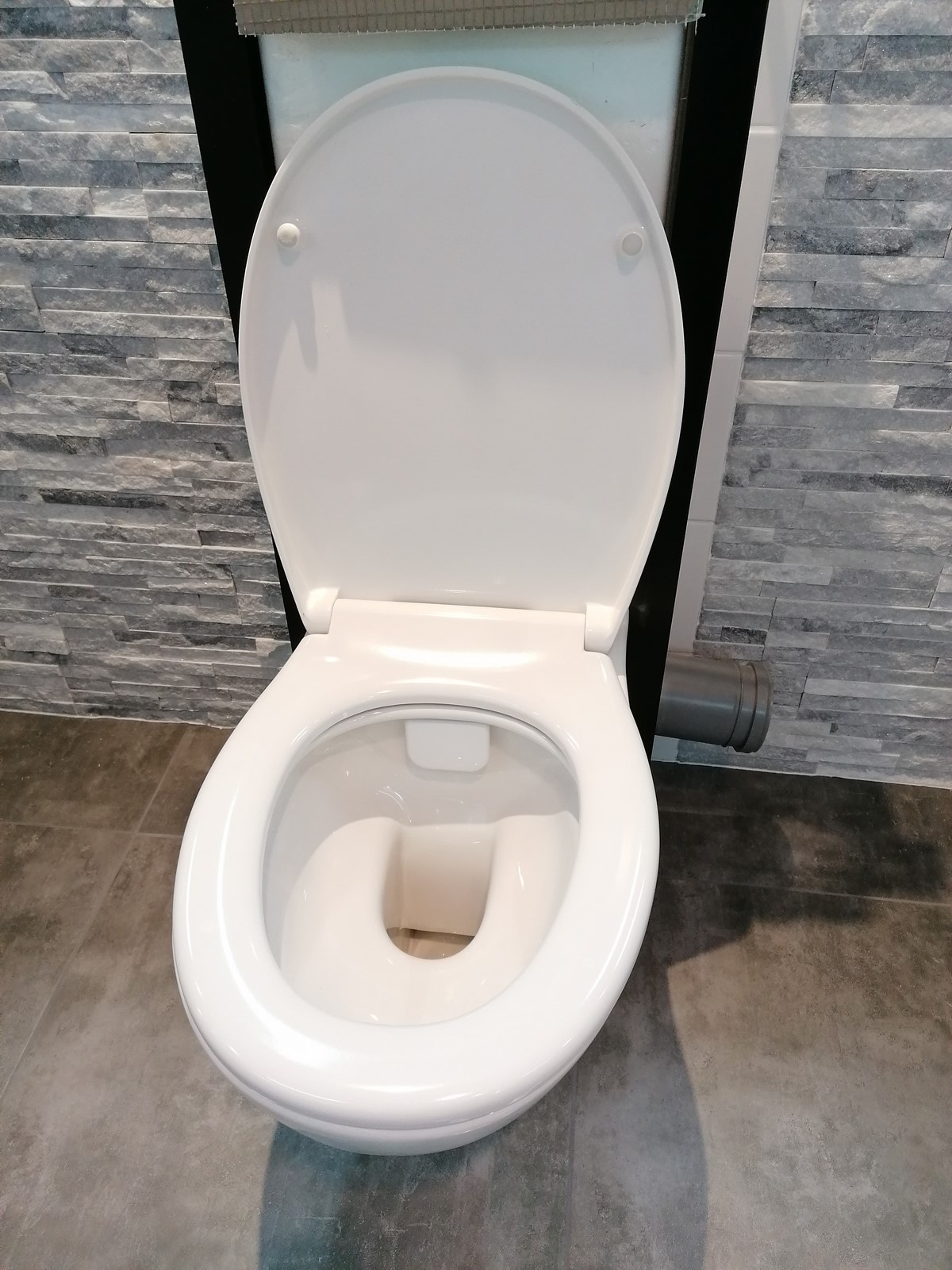 ANTI-CALCAIRE ( nettoyage facilité ) , avec abattant en thermodur traité anti U.V et antibactérien / charnières métalliques à freins de chute.