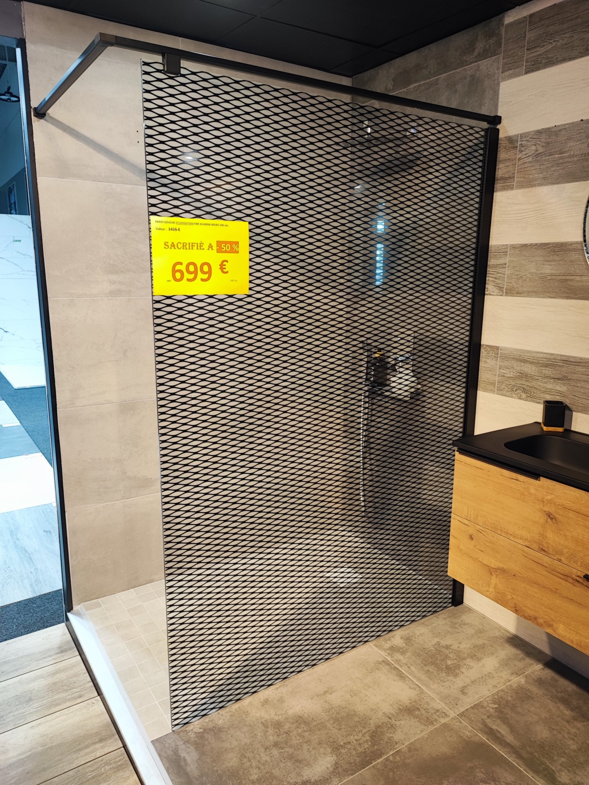DIM. 140x200 cm , pour douche à l'italienne , structure noire mate