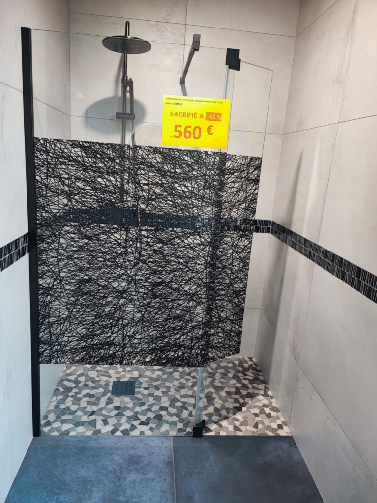 verre sécurit avec décor Tissé noir , Traitement anti-calcaire.